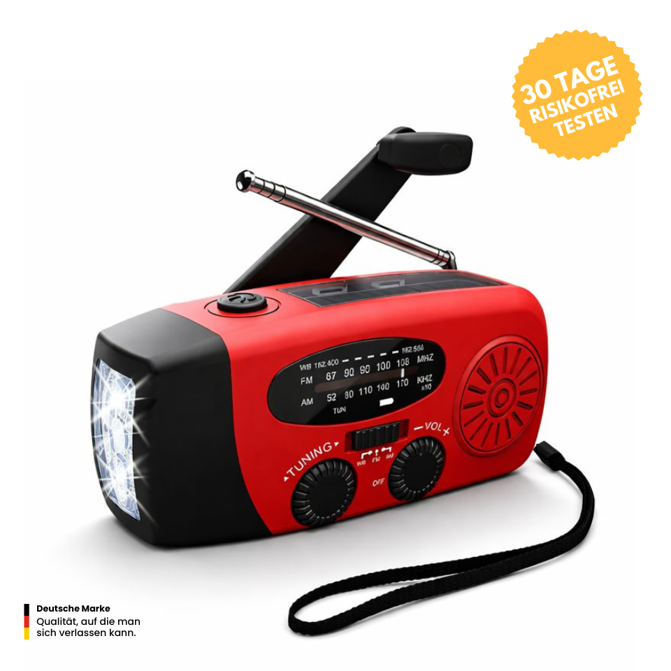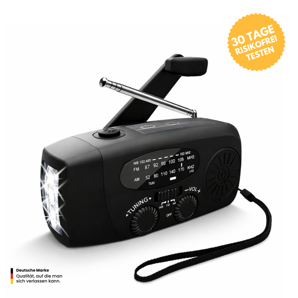 Er vereintStromerzeugung, Radioempfang und Beleuchtungin einem kompakten, tragbaren Notfallgerät – ideal für Haushalt, Auto, Reisen, Camping oder Krisenvorsorge.