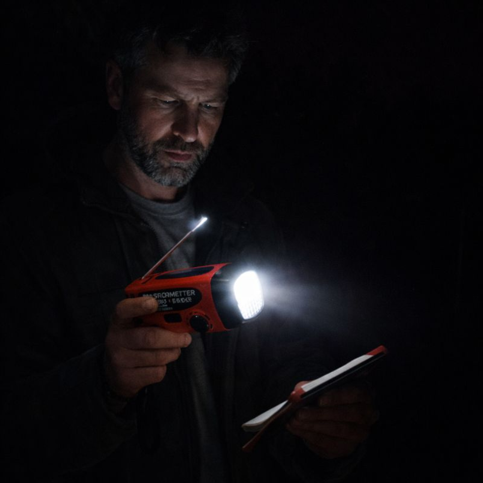 Mit dem integrierten FM/AM-Radio empfängst du wichtige Nachrichten, Warnmeldungen und Durchsagen – selbst dann, wenn das Stromnetz längst ausgefallen ist.